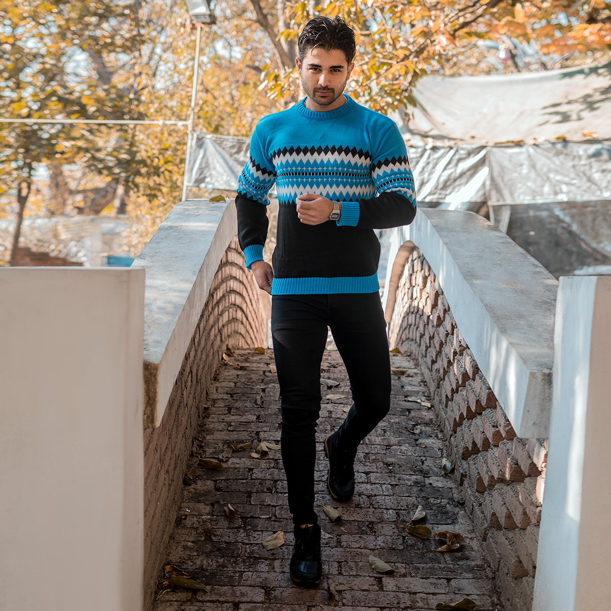 پلیور ژاکارد آبی مشکی مردانه مدلSami